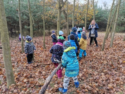Tématem jsou plody lesa a jeho obyvatelé. Povídali a poznávali jsme zvířátka v lese. Na vycházkách jsme sbírali plody lesa a stavěli domečky pro zvířátka. Zahráli jsme si pohádku O Koblížkovi kterou už teď všichni známe.