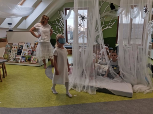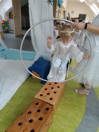 Do nebíčka nebo do peklíčka... to je otázka, kterou naše děti nemusely tento týden řešit - nabídli jsme jim varianty obě, aby si je mohli vyzkoušet. V nebi si hráli na nejhodnější anděli, vyráběli, foukali do peříček a odpočívali na nadýchaných mráčcích.