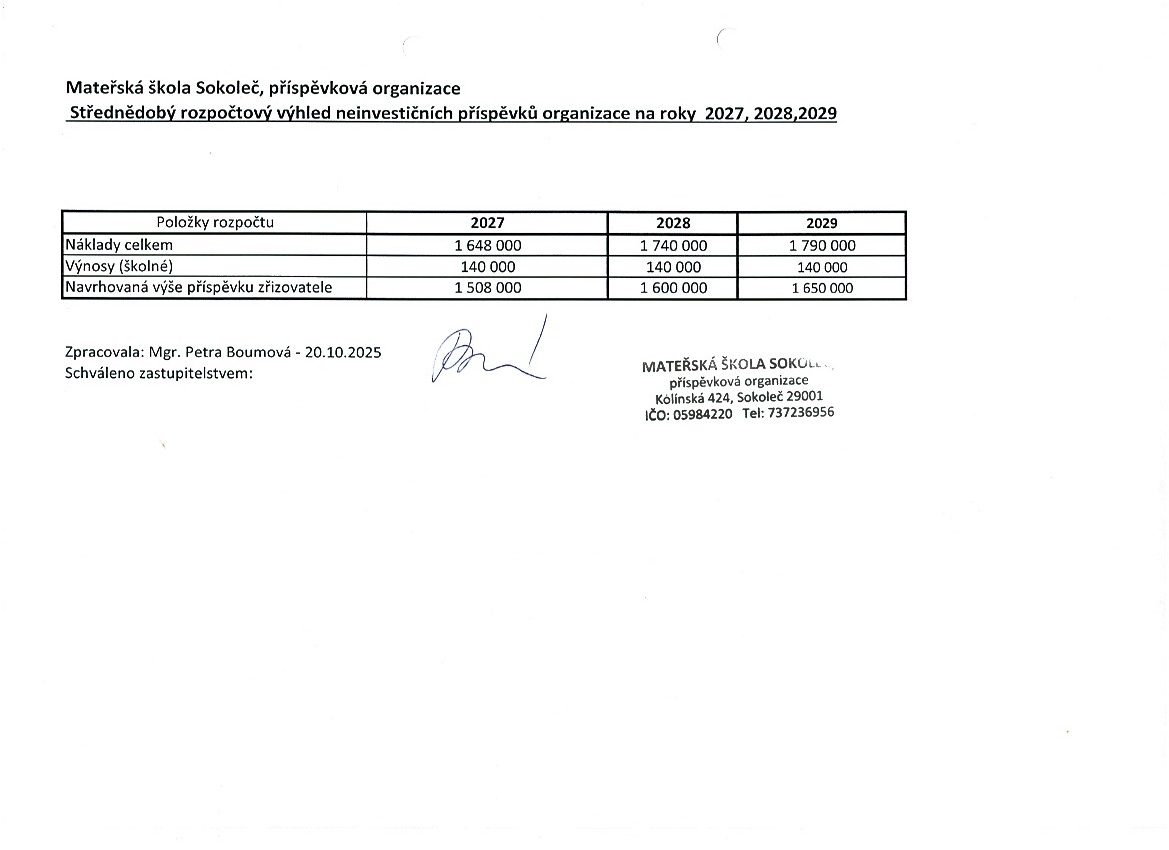 Střednědobý rozpočtový výhled neinvestičních příspěvků organizace na roky 2023, 2024